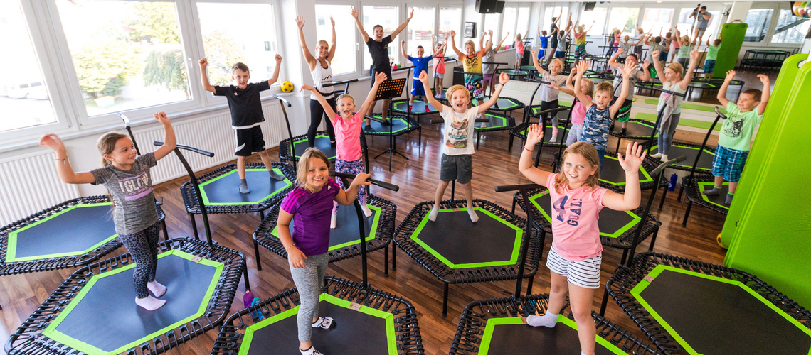 JUMPING Kids ist ein spielerisches Trampolintraining für Kinder und vermittelt unseren Jüngsten, dass Spaß & Bewegung unmittelbar miteinander verbunden sind. Mit gezielten Spielen und Bewegungen wird die Motorik gefördert, sowie die Koordination und das Selbstbewusstsein gesteigert. Unser Kinderkurs wird von einer erfahrenen Pädagogin liebevoll geleitet und ist für die Kids der ideale Ausgleich zum stressigen Schulalltag.